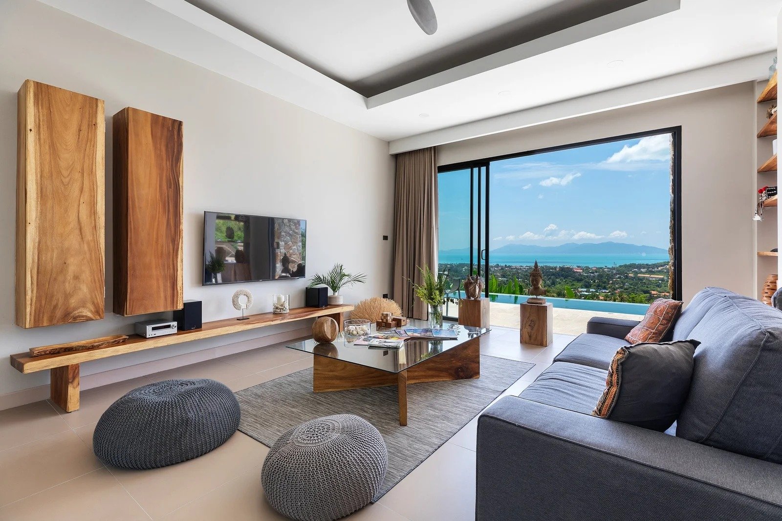 La villa se distingue par son ambiance sereine, ses lignes équilibrées et une identité marquée. Le mobilier sur mesure, les matériaux naturels et les teintes douces composent un ensemble harmonieux et chaleureux.